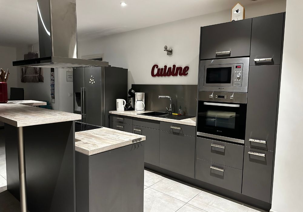 Evidemment, on ne peut pas vivre en corse sans glace ! Frigo américain, cafetière SENSEO, cafetière filtre, grille pain, batteur etc…tout est prévu.